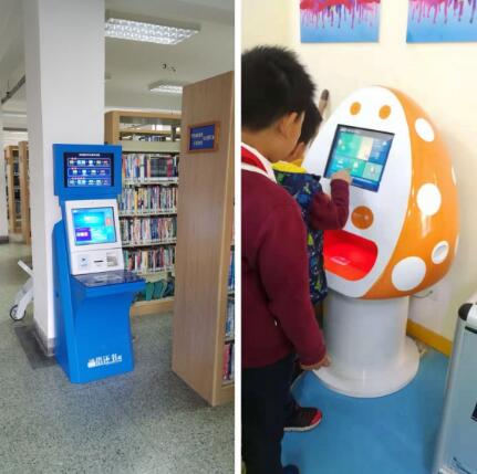 ▲信昇達生產(chǎn)的自助借還機在校園中的應用案例