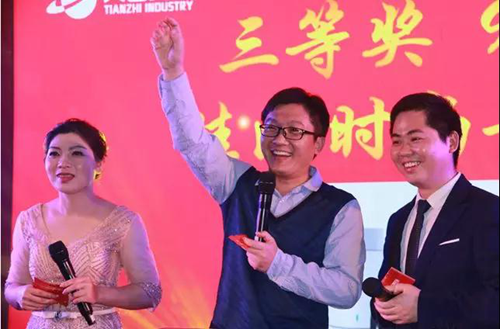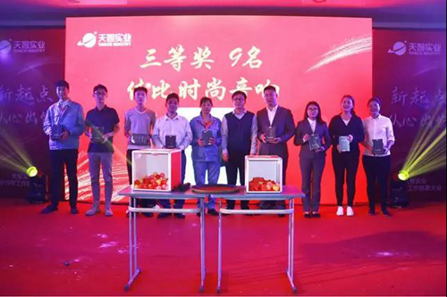 在表演、游戲和晚宴環節中,天智家人們各展所長,為大家帶來一個又一個精彩紛呈的節目。現場掌聲雷動,笑聲迭起,氣氛十分熱烈!抽獎環節豐厚的禮品,現金紅包都不斷激發著現場的氛圍;本次晚會的壓軸大戲“錦鯉大獎”由28項實物獎品和現場李董及各高層領導追加的現金組成;總價值近5萬元“錦鯉大獎”的開出,更是將大會推向了最高潮!