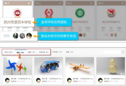 評選除了嘉獎表現優異的學校,更是希望對計劃開課的老師有實質性的借鑒和指導。通過榮譽巡展專區就能夠找到同省優秀的學校,快速查閱該校的教學特色。同時點擊標注的認證創客導師,便可了解該老師分享的開課資源和心得等,其它老師可以根據自身教學計劃,有針對性的參考和借鑒。