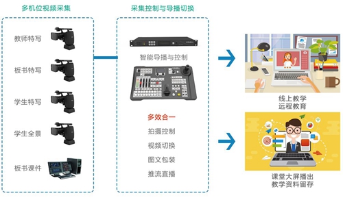 系統設計旨在解決教育資源分配不均等,消除傳統到線上教育遷移問題,全面服務教職人員及學生需求,可通過手動自動雙模實現課堂教學精品課程拍攝錄制,簡單的操作輕松媲美專業攝像人員完成的教學視頻,為現場及遠程觀者提供沉浸式教學體驗。