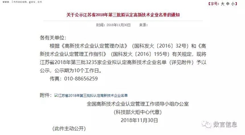 2018年11月30日,高新技術(shù)企業(yè)認(rèn)定管理工作網(wǎng)公示江蘇省第三批3235家企業(yè)擬認(rèn)定高新技術(shù)企業(yè)名單。蘇州數(shù)言信息技術(shù)有限公司榜上有名,被認(rèn)定為高新技術(shù)企業(yè)。