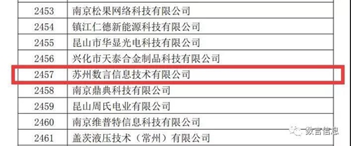 喜訊!蘇州數(shù)言成功入選2018年度第一批江蘇省民營(yíng)科技企業(yè)