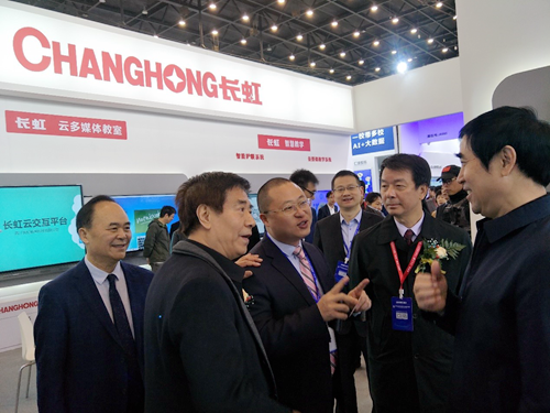 (教育部關心下一代工作委員會常務副主任、中國教育裝備行業協會會長王富及各省市教育裝備領導蒞臨長虹教育展位指導)