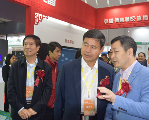 教育部關心下一代工作委員會常務副主任、中國教育裝備行業協會會長王富,廣東省教育廳副巡視員邱克楠等領導在文香展臺參觀