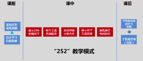 引進101智慧課堂,建立信息化教學班時,新舟中學校領導就高度重視,在學校同步成立了一個智慧課堂教學教研組和兩個備課組。經過一個學期的實踐探索,本校老師結合101教研院的混合式學習模式,摸索出了適合本校學情的教學模式:252教學模式。利用101智慧課堂平臺及252教學模式,學生掌握知識的程度及時呈現和反饋,老師實現了高效的教與學;學校教學管理和評價實現智能化、科學化;家長對學生的學習實現了動態督學。