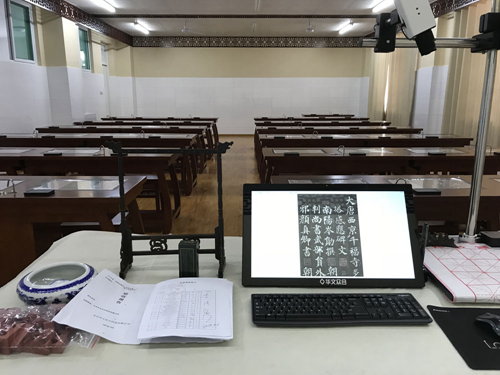 長清區第一初級中學的書法教學搞得有聲有色,與教學產品大有關系。早在去年6月,長清區第一初級中學在全區率先引進了華文眾合智慧書法教室,為一直注重書法教學的學校注入了鮮活的科技力量。