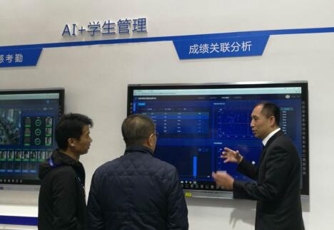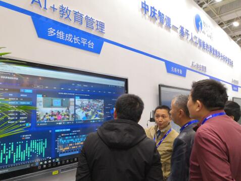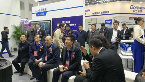 中慶展會現場,人氣火爆。中國教育裝備行業協會會長王富、河北省教育裝備中心處長郭晉寶等多位領導蒞臨中慶展位參觀體驗,并對中慶人工智能+教育給予高度好評。