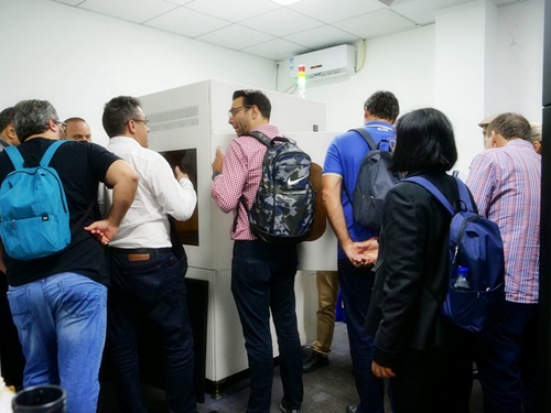 近日,來自世界各國的一群3D打印愛好者來到極光爾沃公司進行參觀交流學習。他們對3D打印機表現出濃厚的興趣,也對3D打印這項神奇的技術感到驚訝,這一群小伙伴有來自非洲、澳大利亞、美國等,他們初次接觸3D打印機,每個人的想法都不一樣。通過細聊,發現他們都覺得3D打印機能為自己創造產品感到很喜歡。
