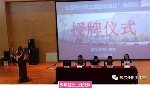 近日,鄂爾多斯少年宮人再慶佳績,慶祝鄂爾多斯少年宮榮獲“全國青少年三維創(chuàng)意設計示范校”稱號,并在少年宮小劇場舉行授牌儀式。