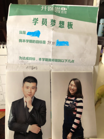 庫里同學放在書桌上的夢想版,左邊是主講老師三皮,右邊是輔導老師米米