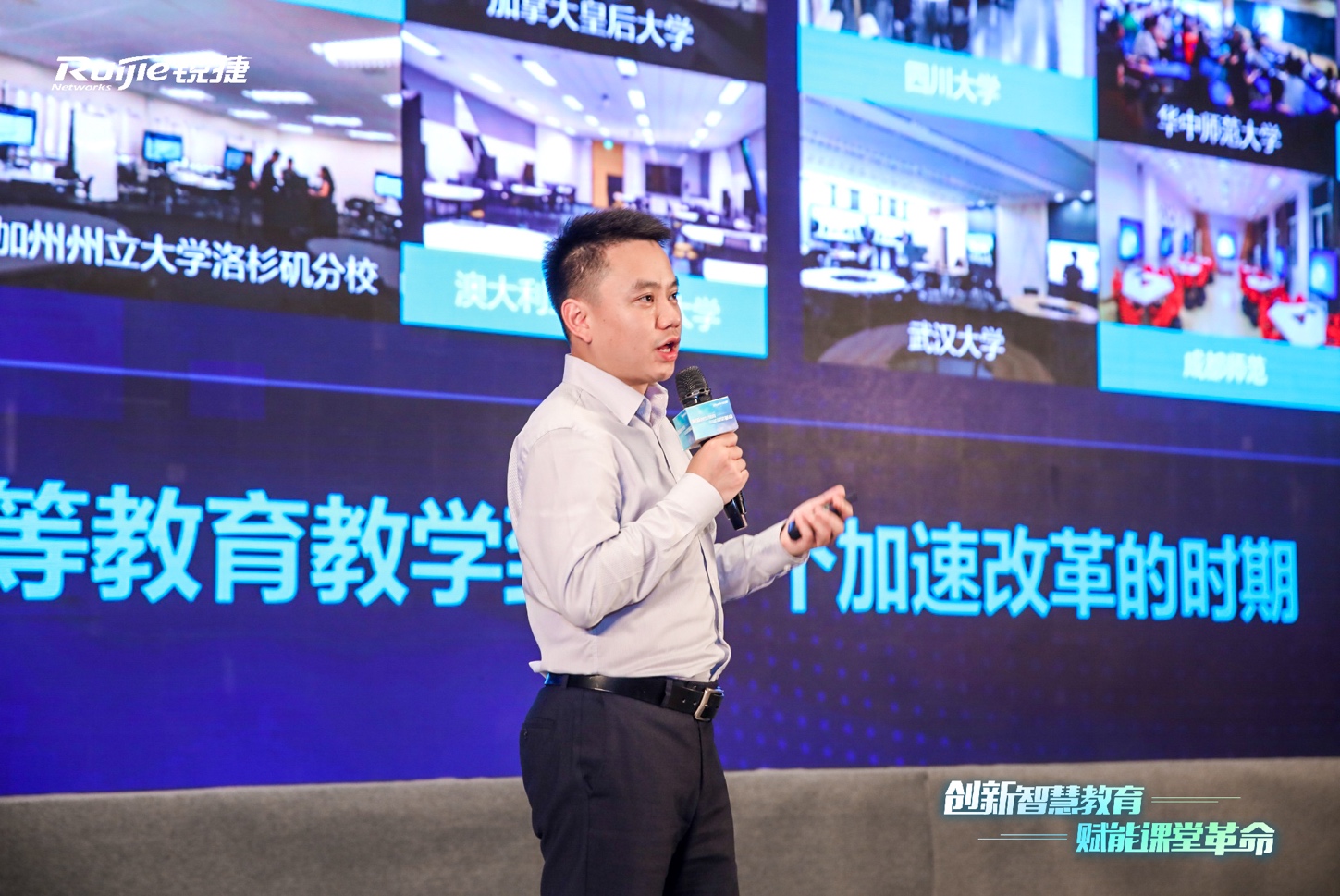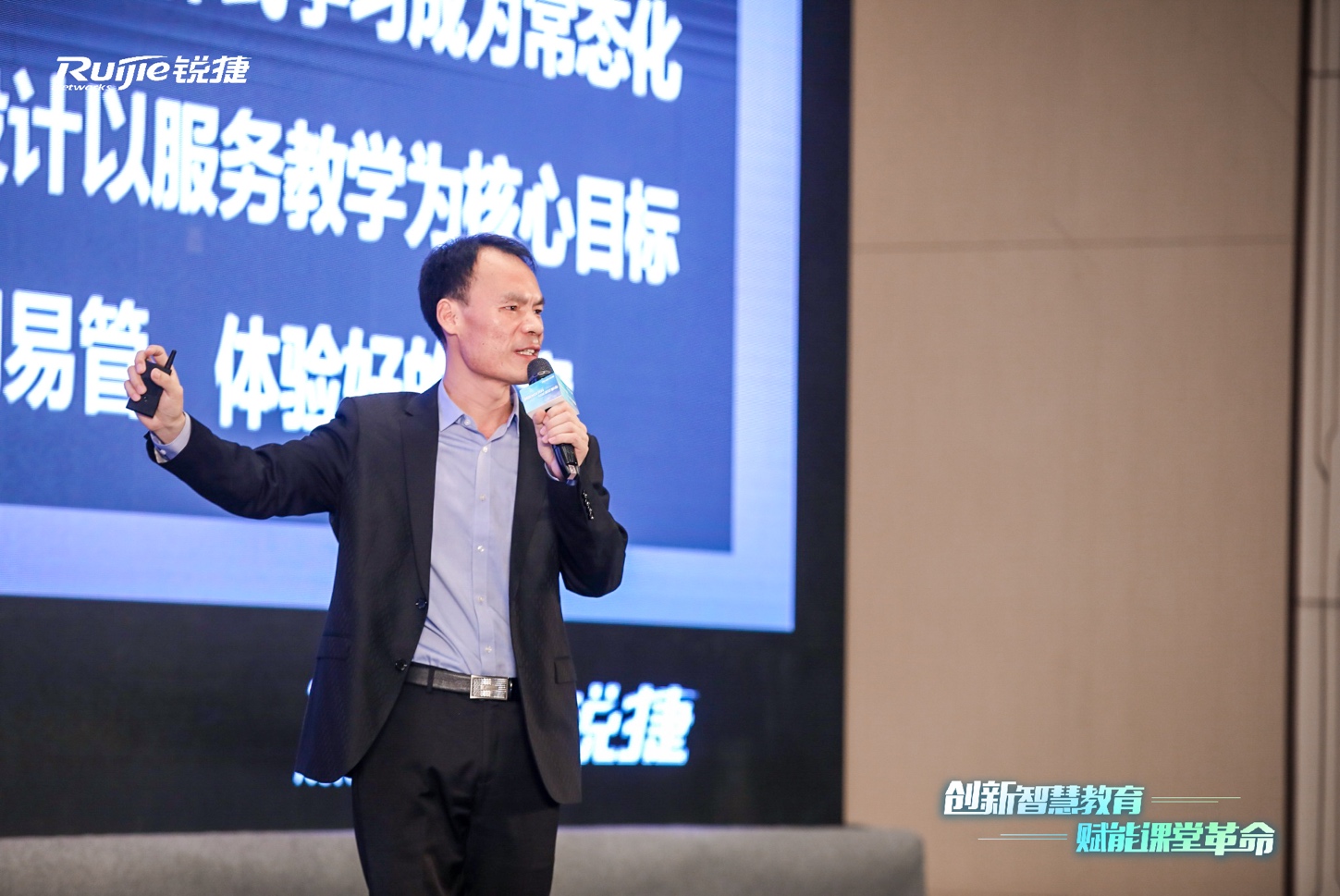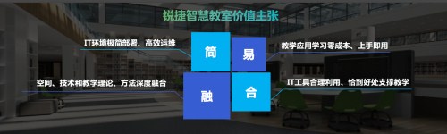 他談到,近年來,銳捷一直堅(jiān)持“扎根行業(yè)、深入場景”的理念,基于教育行業(yè)客戶需求和應(yīng)用特點(diǎn)進(jìn)行產(chǎn)品創(chuàng)新。“簡、易、融、合”不僅是這一理念的充分體現(xiàn),同時(shí)也代表了新一代智慧教室的建設(shè)思想。