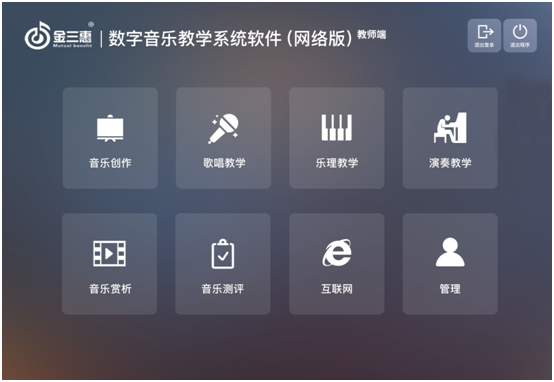 金三惠數字音樂教學系統(網絡版)是基于國家中小學音樂器材裝備配備標準,滿足于音樂教學大綱要求,全新的音樂教學系統,有效地還原音樂老師真實的上課內容,是白板工具與音樂教學全方位結合體,是傳統音樂教學向數字音樂教學的一次革命性的教具改變。主要由:音樂教學授課軟件、音樂教學備課軟件、音樂教學資源庫(配套音樂課本中的樂曲及練習曲)、樂器教學演示終端五部分構成。