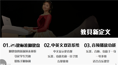 華老師還詳細(xì)介紹了RS760配備的豐富教材,提到教材內(nèi)容選自中小幼音樂(lè)課本,符合教學(xué)大綱,學(xué)生上手快,適合校園課堂。