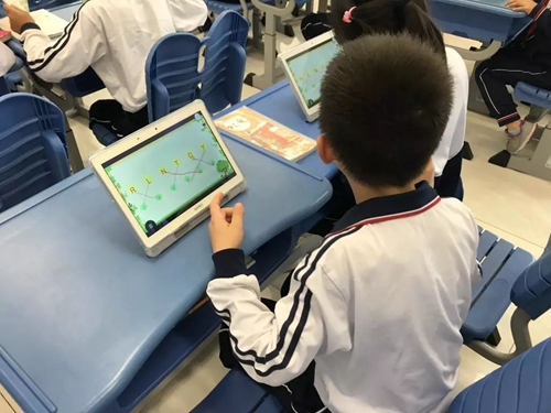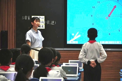 而對于數學課《三角形的內角和》和《圖形的旋轉》,許老師和廖老師則分別展示了平板電腦在課堂教學中的應用。基于希沃易課堂,學生直接在seewoPad完成老師推送的微課、練習題的學習,并通過系統向教師平臺反饋學習效果,使課堂教學更具針對性。