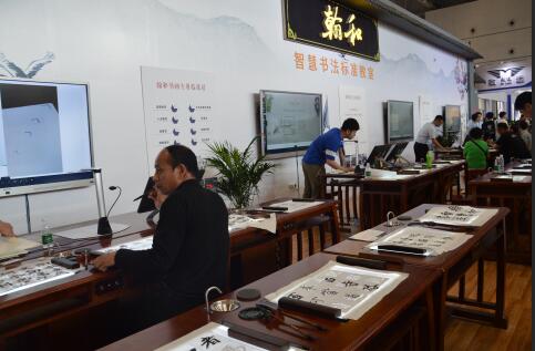 本屆展會,啟華教育帶來翰和智慧書法標準教室,顛覆了傳統(tǒng)書法教育模式,能把書法教學(xué)效率提高五倍以上。