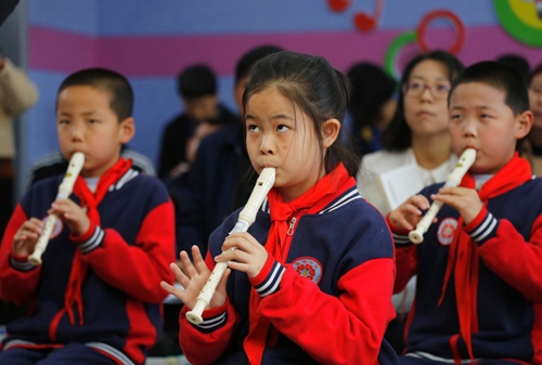 交流活動(dòng)中,門(mén)頭溝區(qū)付家臺(tái)中心小學(xué)師生們?yōu)閰?huì)人員介紹了校園整體文化環(huán)境建設(shè)情況和學(xué)校特色辦學(xué)理念,并進(jìn)行了數(shù)學(xué)、語(yǔ)文、英語(yǔ)、音樂(lè)、美術(shù)等課程展示。在韻律操、校園劇表演環(huán)節(jié),師生們以樸實(shí)無(wú)華的表演,展示出山村學(xué)校師生積極向上、昂揚(yáng)奮進(jìn)的精神面貌。
