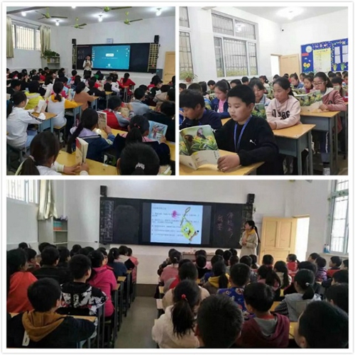 學生們面對著圖文并茂的書本內容,聽的認真,連窗外的動靜都渾然不覺。四個月來,通過導讀課學生們已經(jīng)完成了10本書的閱讀!
