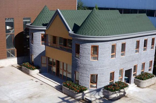 在位于北京市的一個不起眼的工業園區中,佇立著一座高度6米,長寬均為15米,墻體厚度25厘米,面積400平方米的雙層別墅。這是全球首座3D現場/整體打印的建筑物。