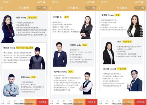 用我自己的例子來說吧。因為得知一個學長雅思口語考了8.5分,極為膜拜,跑去取經。學長極力推薦土豆的口語老師李超。因為這個源頭,我開始研究土豆的師資,但畢竟如果整個機構靠一個老師牛,也撐不起整個雅思考試。于是我又去聽了一次雅思天后Vicky老師(也是土豆的創始人,雅思圈內非常有名)的試聽課,覺得是真的厲害,不是靠包裝吹出來的那種厲害。聽完課之后我基本就對土豆比較放心了。