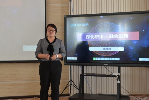 大理市互動(dòng)教學(xué)創(chuàng)新工作室主持人、希沃杏壇導(dǎo)師楊雅君針對(duì)信息技術(shù)與教育教學(xué)的融合進(jìn)行了《深化應(yīng)用•融合創(chuàng)新》的專(zhuān)題講座。