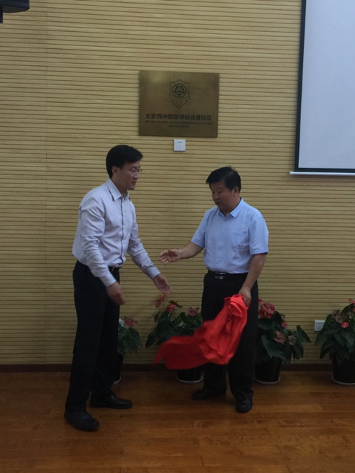 圖為2017年9月份北京四中馬景林校長和佳蓮學校劉子玉校長共同為北京四中國際課程佳蓮校區(qū)揭牌