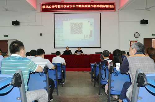 歙縣2019年初中學(xué)業(yè)水平生物實(shí)驗(yàn)操作考試考務(wù)培訓(xùn)會(huì)在新安中學(xué)召開(kāi)。全縣36所初中教務(wù)主任和監(jiān)考教師130余人參加培訓(xùn)。縣教育局工委委員、副局長(zhǎng)潘曙青到會(huì)指導(dǎo)。