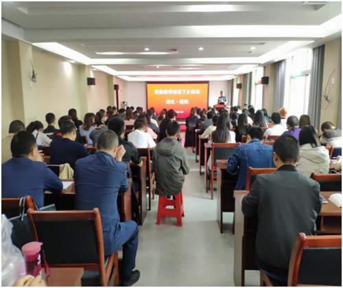 2019年5月15日上午,湖北省教育技術裝備處處長范義虎帶領的專家團隊蒞臨我市,開展湖北省實驗教學“送教下鄉”活動。來自全市各地的130余名教師參加了活動。