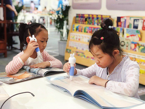 會唱歌的筆,會吟詩的墻,會說不同語言的故事書,吉美展臺營造的聲動小世界吸引了一批又一批小朋友和“大朋友”的關注。在體驗桌旁,小朋友們紛紛拿起吉美兔點讀筆試讀自己感興趣的有聲繪本,好奇又專注的樣子讓人瞬間感受到書香童年的美好。
