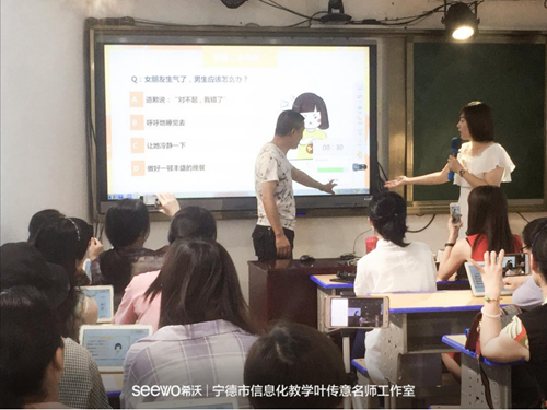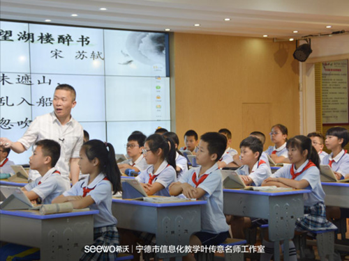 簽約儀式過后,工作室正式開始基于希沃易課堂為載體的課堂教研活動。福鼎實驗小學的老師們為寧德各縣市的觀摩老師帶來了一場關于智慧課堂的盛宴,先給觀摩老師們進行希沃易課堂的培訓,隨后為各位老師展示基于易課堂為載體的公開課《望湖樓醉書》,得到現場老師們的一致好評。隨著教研活動的不推進,老師對信息化探索的持續深入,老師們也漸漸的被希沃易課堂所吸引。