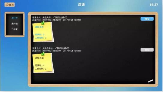 歐帝智慧云班牌加入了走班制的選課、走班功能,學生可以通過平臺進行選課,平臺通過該數據分析形成相應的課程表顯示在班牌終端,學生可以通過班牌上的信息查看自己上課所在的教室,然后通過班牌刷卡考勤到相應的教室上課,教師可通過班牌的考勤數據統(tǒng)計學生上課數據。同時,學生也可以通過班牌反饋聽課情況,以便老師和學校更加直觀的掌握課堂情況,調整教學進度。