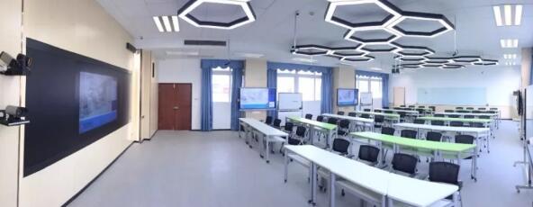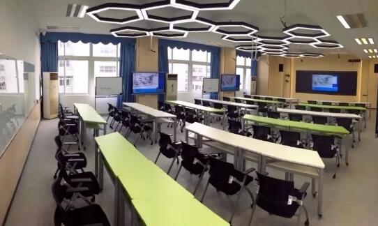 別出心裁的小組討論式設計,讓老師可以多方位地進行授課,既能“集體聽講”,也能“分組討論”,更讓師生之間輕松進行互動交流,配備空調、燈光、多媒體等智能設備,讓廣州大學具備了明亮、舒適、科技、便捷的上課環境。