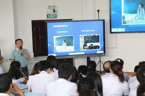 思茅實驗中學信息中心主任施承李老師分享了該校教育信息化改革的經驗。從2017年開始引入希沃交互智能平板及希沃教學軟件,到培訓融合,賽課交流,授課示范與教學研修,近一學年以來,年輕教師們已經能夠將希沃白板、班級優化大師等軟件與學科教學實現巧妙對接和深度融合。