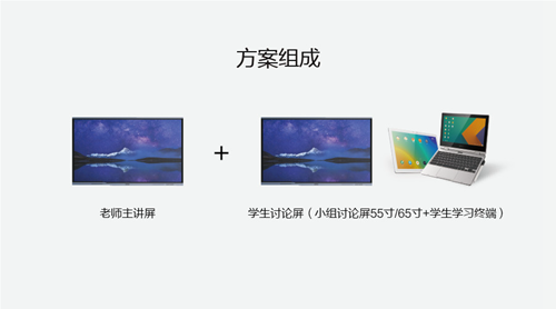 方案以大屏類(lèi)產(chǎn)品為基礎(chǔ),搭配推拉黑板、交互智能錄播、記易黑板、視頻展臺(tái)、擴(kuò)音套件、環(huán)境監(jiān)測(cè)儀等設(shè)備,輔以教學(xué)互動(dòng)軟件、學(xué)生點(diǎn)評(píng)系統(tǒng),讓老師教得更智能化,讓學(xué)生學(xué)得更個(gè)性化,讓師生互動(dòng)更多元化。