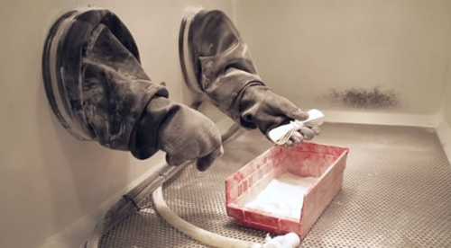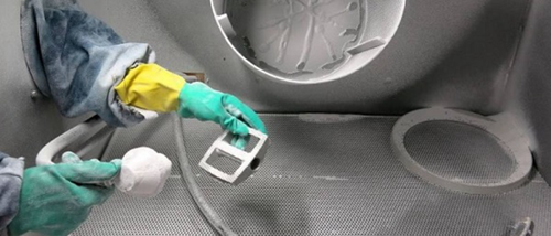 我們已經構建了一個算法,只需單擊一下,就可以將您的零件空心化。它分析對象的幾何結構,并確定在哪里可以刪除多余的電源。一旦3D打印部件從3D打印機中取出,我們的專業技術人員會對其進行一些后處理。它所經歷的過程稱為噴砂。使用噴砂工具,技師在孔內噴射空氣和粉末(砂),以便清除多余的粉末。