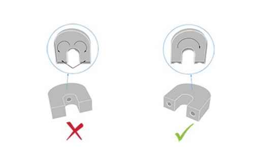 大多數情況下適用于將孔放置在不可見的表面上,例如三維模型的底部。將兩個孔一個挨著放置是毫無意義的,粉末將無法正確清除。兩個(或更多)孔之間應該有一定的距離,讓粉末在零件內部循環。最好將孔放在距離彼此較遠的邊緣或區域附近,至少一個平面上有一個孔,另一個平面上有一個孔。