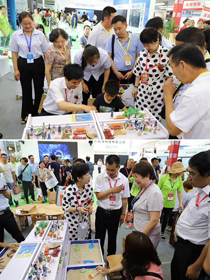 《國家中長期教育改革和發(fā)展規(guī)劃綱要(2010-2020年)》提到:學(xué)前教育對幼兒身心健康、習(xí)慣養(yǎng)成、智力發(fā)展具有重要意義。遵循幼兒身心發(fā)展規(guī)律,堅持科學(xué)保教方法,保障幼兒快樂健康成長。山東建榮一直致力于幼兒園玩教具的開發(fā),本次展出的情景繪本閱讀套裝,通過該套裝,小朋友可以將了解過的繪本故事通過諸多模型的排演進行繪本內(nèi)容情景再現(xiàn),并且可以將排演出來的情景再反饋出來,不僅提高小朋友的想象力、動手能力,還可以提高小朋友的語言能力,可謂是一舉多得。另外,各種造型的實木桌椅、實木積木,綠色環(huán)保,也得到了小朋友、家長以及很多幼兒園老師的認(rèn)可。