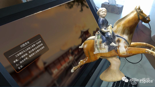 有別于以往在“紙面上”的學(xué)習(xí),極倍zSpace與中教啟星一起,將博物館中的文物搬到課堂中來(lái),為學(xué)生多方位地進(jìn)行展示。仰仗于極倍zSpace的虛擬現(xiàn)實(shí)及增強(qiáng)現(xiàn)實(shí)技術(shù)算法,文物栩栩如生地呈現(xiàn)在學(xué)生面前,學(xué)生可以通過(guò)手中的六維度觸控筆進(jìn)行多角度的旋轉(zhuǎn)和放大,仔細(xì)觀察每一個(gè)細(xì)節(jié),進(jìn)行探究性學(xué)習(xí),激發(fā)更多思考。