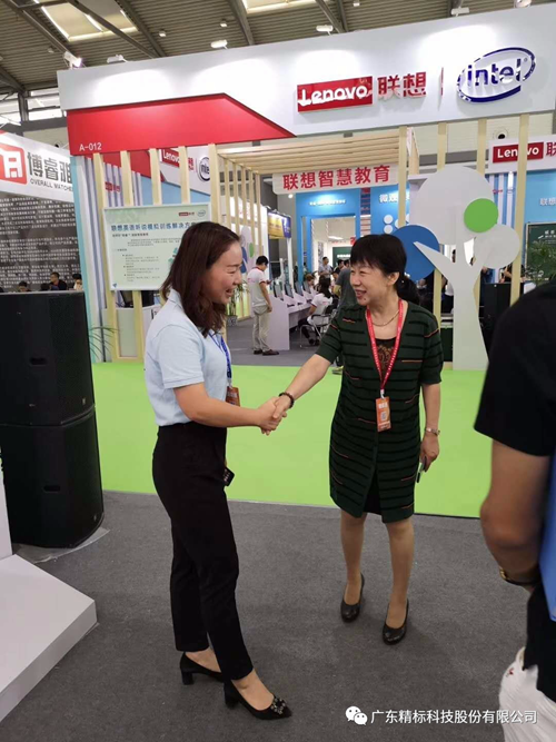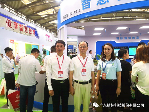 感謝中共陜西省委教育工作委員會委員、陜西省教育廳副廳長趙昶葆,深圳市教育裝備行業協會會長、廣東心里程教育集團總裁彭錦環蒞臨精標展位指導參觀。致謝現場來賓對精標智慧教室的一眾贊許。
