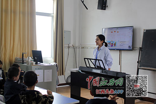 江西科技師范大學音樂專業(yè)實習支教生劉婧宇在灣里區(qū)羅亭學校上課