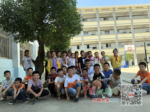 南昌大學體育專業(yè)實習支教生周文俊給宜豐縣新莊鎮(zhèn)中心小學學生上籃球課