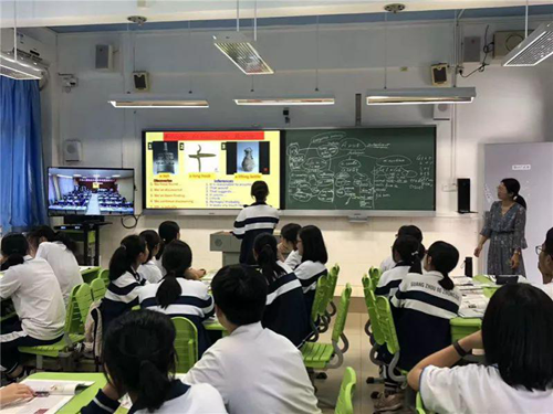 看到老師如變魔術般地,把黑板上的思維導圖傳到旁邊的顯示屏,兩教室可以共享一塊黑板時,即便是已經習慣用希沃交互智能平板上課的廣州八十六中的同學們,依然發出“哇!”的一聲驚嘆。現場領導似乎被孩子們的天真爛漫感染到,也都笑了起來。
