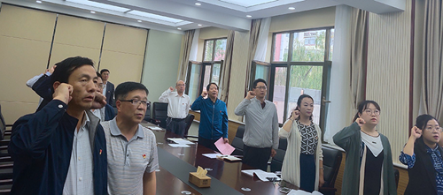 講黨課前,規劃處財務處黨支部書記、廳發展規劃處處長樊協珍同志帶領與會黨員一同重溫入黨誓詞。