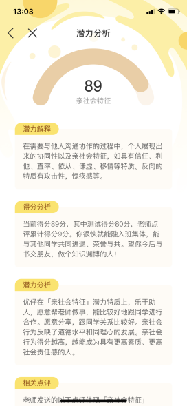 即可獲取到孩子詳細的潛力分析報告。