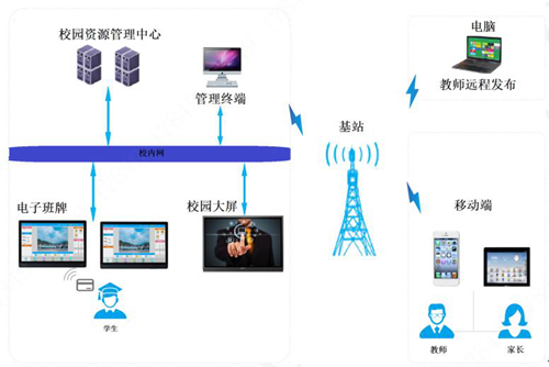 電子班牌系統由三個部分組成:云平臺、校園平臺管理系統、數字班牌終端。