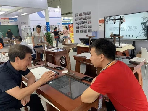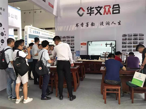 《中小學(xué)智慧書法教室裝備規(guī)范》團(tuán)體標(biāo)準(zhǔn)的牽頭制定單位華文眾合參加了此次展示會(huì),并展出新產(chǎn)品——第五代智慧書法教室,受到大批觀眾的喜愛。展示會(huì)期間,多位行業(yè)協(xié)會(huì)領(lǐng)導(dǎo)蒞臨華文眾合展位進(jìn)行參觀指導(dǎo)。