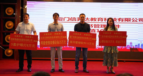 在歡迎會上,廣西教育裝備行業協會會員企業為支教扶貧愛心捐贈活動捐贈教學設備及現金總額達300多萬。廣西教育廳領導和有關處室領導參加了歡迎會。