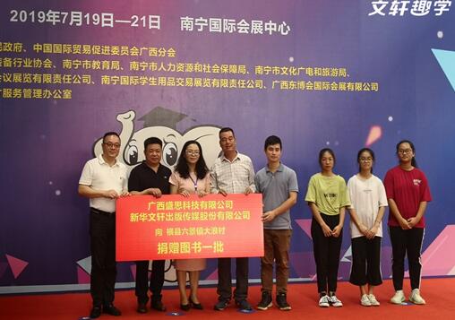 除此以外,展會開幕式上,廣西盛思科技有限公司和新華文軒秉承著全心全意服務教育的理念與宗旨,共同向廣西貧困地區大浪村捐贈了一批圖書,獲得參會領導以及主委會高度肯定和贊譽。