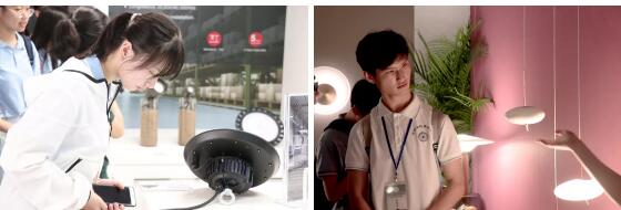 立達(dá)信銷往全球112個(gè)國(guó)家及地區(qū)的產(chǎn)品均在展廳展出,“琳瑯滿目”的照明產(chǎn)品及物聯(lián)網(wǎng)解決方案也引起同學(xué)們極大的興趣。