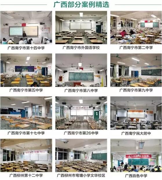 通過最近兩年的推廣和改造,廣西與時俱進積極推進學校健康光環(huán)境改造。目前,已有南寧十四中、南寧市外國語學校、南寧八中、南寧九中、南寧十五中、南寧二十中、南寧二十六中等學校選用立達信全護眼照明產(chǎn)品進行照明升級改造!