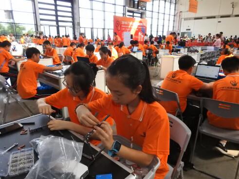本次大賽以創客教育為核心,旨在培養中小學生創新意識、創新精神和團隊合作精神,提高實踐能力和創新能力,展示創客教育成果、分享創客教育經驗,全面推動我區中小學創客教育發展。大賽共設置5個競賽項目,分別是WER機器人競賽(含積木賽和挑戰賽)、盛思掌控未來、ENJOY AI—奧林匹亞火種、八爪魚創客馬拉松和思迪明智能設計競賽。來自廣西14個地市的350支隊伍,共1285人參加了此次比賽。本次大賽裁判從全區抽調50名中小學創客教育骨干教師組成。